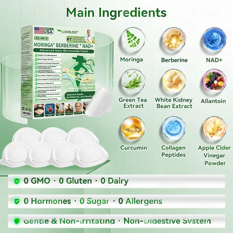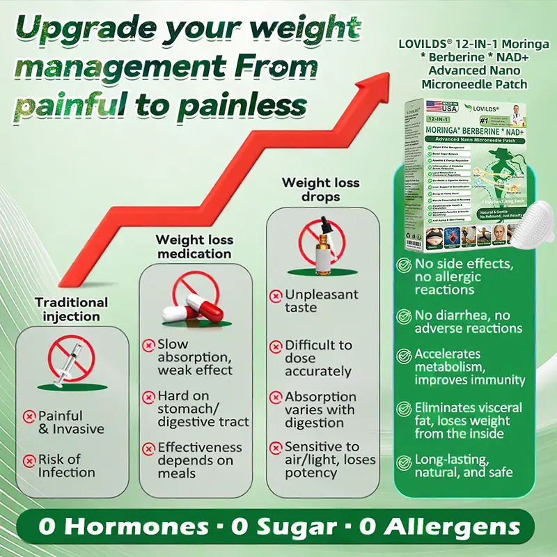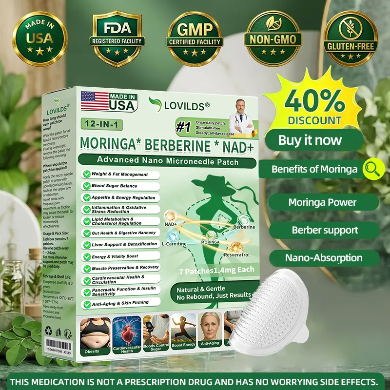 โWe are a top-tier endocrinology research team. Many members of our team have personally experienced obesity and its associated complications. Over the years, we have also systematically evaluated commonly available weight-loss interventions on the market, including injectable therapies, capsules, and oral weight-loss pills. However, the effectiveness of these approaches has often been limited, and many products have shown issues with tolerability.These experiences motivated us to focus on developing a safer, more natural, and more effective solution for metabolic health and weight management. After more than 12 years of research, our team initiated self-testing of this programme, successfully overcoming the limitations of traditional single-pathway interventions that frequently cause gastrointestinal discomfort.By adopting a dual-pathway strategyโsupporting appetite regulation and fat metabolism while also addressing post-weight-loss skin firmnessโwe observed significant improvements in body weight and metabolic health, without rebound weight gain or adverse reactions. Subsequently, we conducted large-scale studies and clinical trials involving more than 5,000 participants, further validating the outstanding performance of the LOVILDSยฎ Moringa ยท Berberine ร NAD+ 10-in-1 Advanced Nano Microneedle Patch in metabolic regulation, appetite control, and overall health improvement.These benefits were particularly pronounced among overweight or obese adults over the age of 40. Supported by contemporary medical research, LOVILDSยฎ๐ด๐๐๐๐๐๐ฎ ยท ๐๐ฒ๐ฟ๐ฏ๐ฒ๐ฟ๐๐ฃ๐ ร ๐๐ผ๐+ ๐๐-๐ข๐ง-๐ ๐๐ฑ๐๐ฎ๐ป๐ฐ๐๐ ๐๐๐ฃ๐ค ๐๐๐๐ง๐ค๐ฃ๐๐๐๐ฅ๐ ๐๐๐ญ๐๐ has undergone rigorous FDA regulatory review and evaluation, with its safety, effectiveness, and compliance formally recognized. This formulation represents a scientific advancement beyond conventional weight-loss products that are often associated with significant gastrointestinal burden, offering a natural, safe, and effective option for individuals seeking comprehensive metabolic support and sustainable long-term weight management.โ