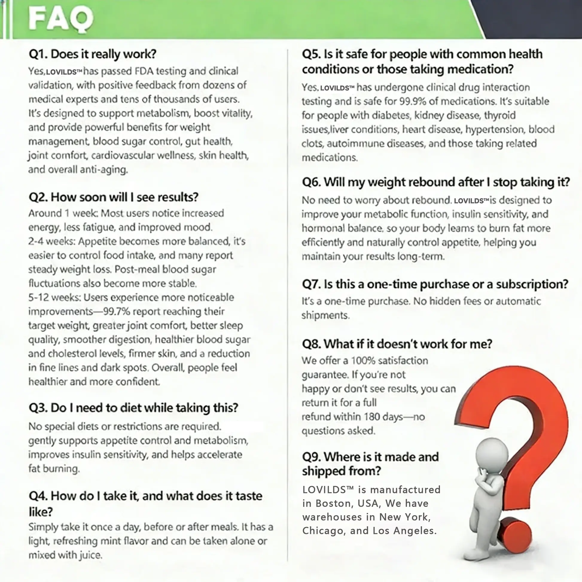 We are a top-tier U.S. endocrinology research team, and many of us have personally experienced challenges with excess weight and its related physical discomfort. Over the years, we have also evaluated commonly available weight-management solutions on the market, including injectable products, capsules, and oral weight-management supplements. However, their results were often limited, and many were accompanied by tolerability concerns. These experiences motivated us to develop a safer, more natural, and more effective approach to metabolic support and healthy weight management. After more than 12 years of research, our team initiated self-testing of this program, successfully overcoming the limitations of traditional single-pathway solutions that frequently cause gastrointestinal discomfort. By adopting a dual-pathway strategyโsupporting appetite balance and fat metabolism while also addressing skin firmness after body composition changesโwe observed significant improvements in body weight and metabolic balance, without rebound weight gain or adverse reactions. Subsequently, we conducted large-scale studies and trials involving more than 5,000 participants, further validating the performance of LOVILDSโข๐ด๐๐๐๐๐๐ฎ ยท ๐๐ฒ๐ฟ๐ฏ๐ฒ๐ฟ๐ถ๐ป๐ ร ๐๐ผ๐+ ๐๐-๐ข๐ง-๐ ๐๐ฑ๐๐ฎ๐ป๐ฐ๐๐ ๐๐๐ฃ๐ค ๐๐๐๐ง๐ค๐ฃ๐๐๐๐ก๐ ๐๐๐ฉ๐๐ in metabolic regulation, appetite control, and overall wellness. These benefits were particularly pronounced among adults over the age of 40 who are managing excess weight. Supported by contemporary scientific research, LOVILDSโข๐ด๐๐๐๐๐๐ฎ ยท ๐๐ฒ๐ฟ๐ฏ๐ฒ๐ฟ๐ถ๐ป๐ ร ๐๐ผ๐+ ๐๐-๐ข๐ง-๐ ๐๐ฑ๐๐ฎ๐ป๐ฐ๐๐ ๐๐๐ฃ๐ค ๐๐๐๐ง๐ค๐ฃ๐๐๐๐ก๐ ๐๐๐ฉ๐๐ has undergone strict review and evaluation in accordance with public health standards, with its safety, effectiveness, and quality formally recognized. This formulation represents a scientific advancement beyond conventional weight-management products that are often associated with significant gastrointestinal burden, offering a natural, safe, and effective option for individuals seeking comprehensive metabolic support and sustainable long-term healthy weight management.