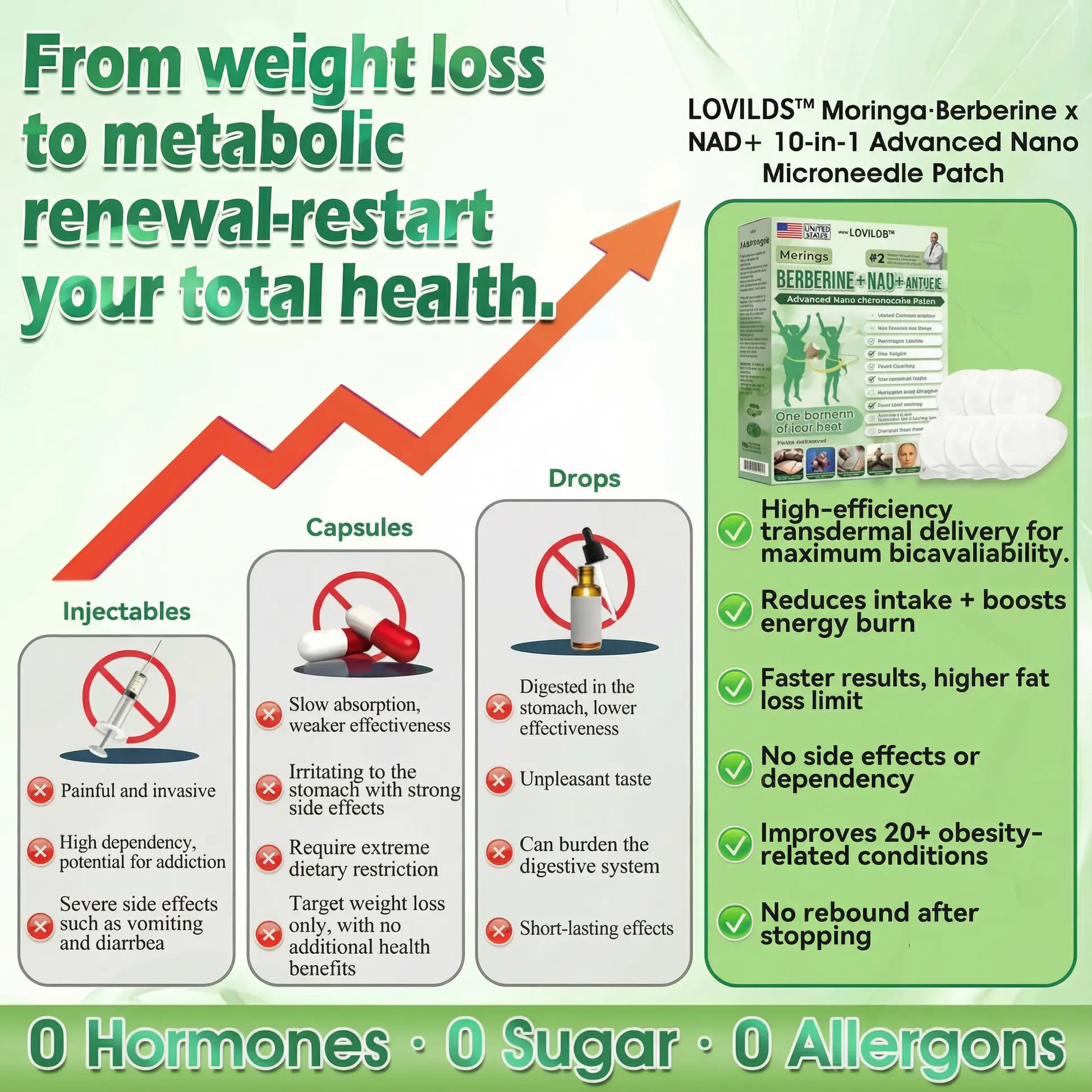 LOVILDSโข ย Moringaยท Berberine x NAD+ 10-in-1 Advanced Nano Microneedle Patch: 98% Absorption Rate, Transforming Weight, Liver, Gut & Skin Health